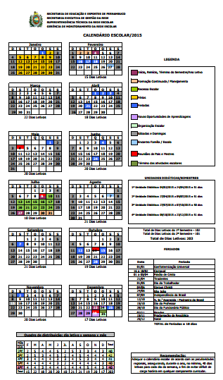 Calendário da escola para 2015