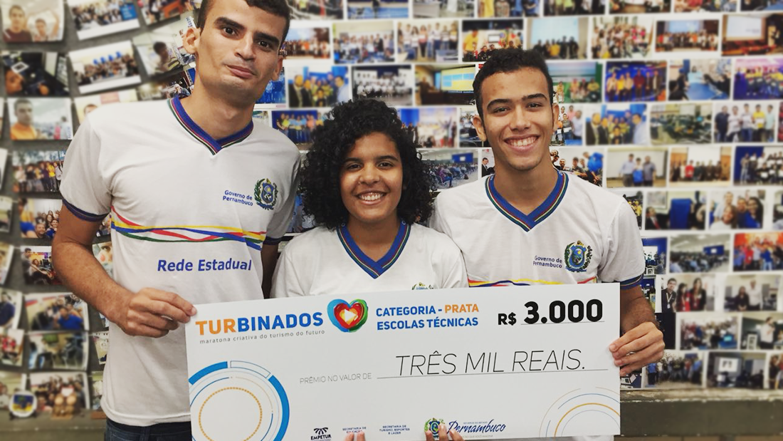 Nesta última terça-feira, 9, ocorreu a premiação do projeto Turbinados: Maratona Criativa do Turismo do Futuro, a cerimônia ocorreu no Centro de Convenções e a ETEPAM foi muito bem representada por um time de três estudantes do terceiro ano que ficaram em segundo lugar na categoria de Escolas Técnicas, Vinícius Lima, Aline Bandeira e Gabriel Araújo, estes dois últimos colaboradores dos Centro de Inovação da ETEPAM, juntamente com a professora mentora Lucineide Ribeiro. Promovido pela Secretaria de Turismo, Esporte e Lazer de Pernambuco, o principal intuito do projeto é promover a integração de jovens criativos e empreendedores com o turismo do futuro no estado, dividido em três etapas, as equipes finalistas apresentaram seus respectivos trabalhos e receberam suas premiações com as três primeiras colocações.